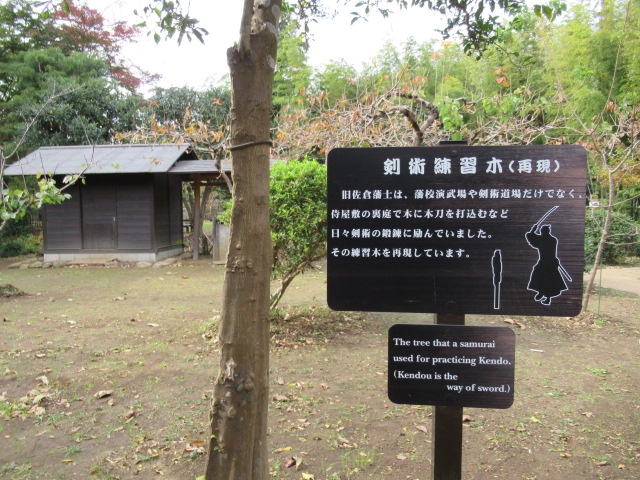 コロナの感染者は減少し緊急事態宣言も解除され、進めていた日本100名城制覇を目指し旅をしています。今回は佐倉城を訪問し帰りはここ「武家屋敷」付近の散策をしました。江戸時代の面影を今に残す土塁と生垣の通りには武家屋敷が残されていますがその敷地を利用した市民緑地である「侍の杜」があります。敷地内には武家屋敷のお庭や旧佐倉藩士が剣術の練習に使用した「剣術練習木」復元や「井戸」などがあり武家屋敷での生活の様子を楽しむことができます。無料で一般開放されていますので是非お立ち寄りください。