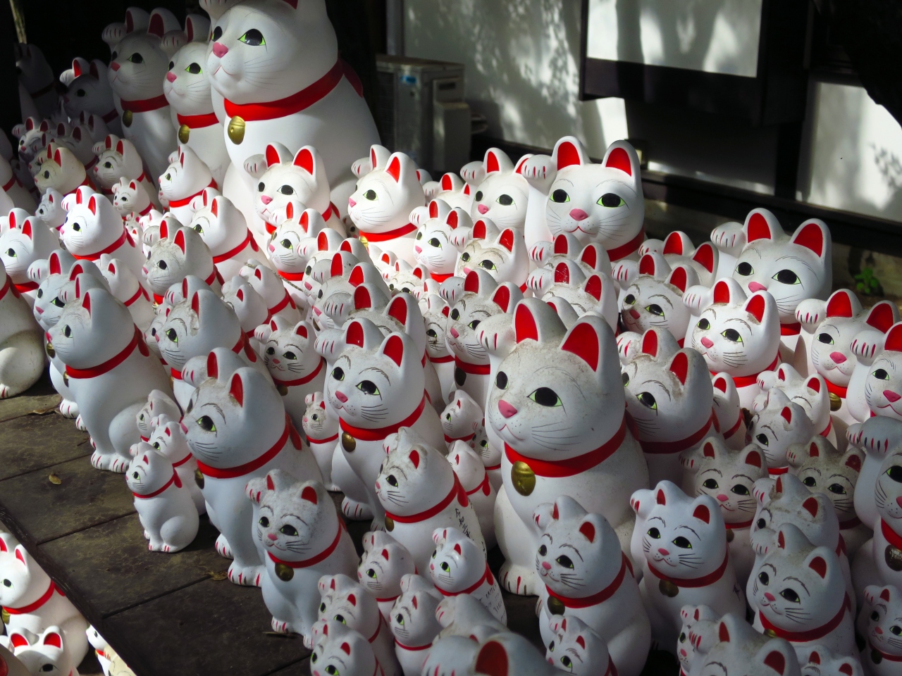 The temple is located in a quiet residential area, and is famous for its beckoning cat