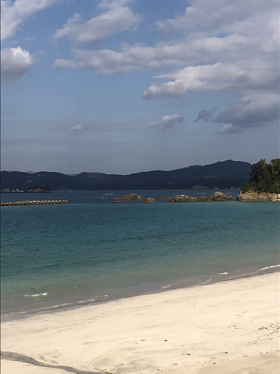 浅瀬なのか?海の色が沖縄の明るいエメラルドっぽい色が出ているところもありました。