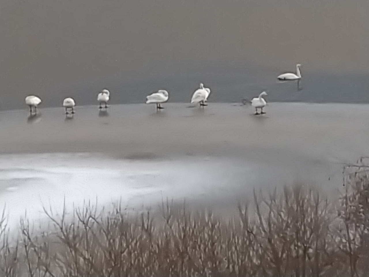 真っ白な湖に白鳥が見れた