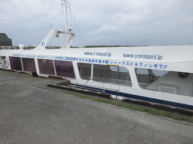 与那国島の主要観光スポットの一つです.海底遺跡クルーズ専用船で海底遺跡に向かいます.船は半地下式になっているので,窓越しに海底遺跡を見ることが出来ます.ただ,透明度はそれほど高くありません.また,海底遺跡を見る際にはどうしても船が停止するのと,海底遺跡自体が与那国島の南の外海に面した場所にあるので,かなり搖れが酷いです.船酔いに弱い人は気を付けた方が良いと思います.