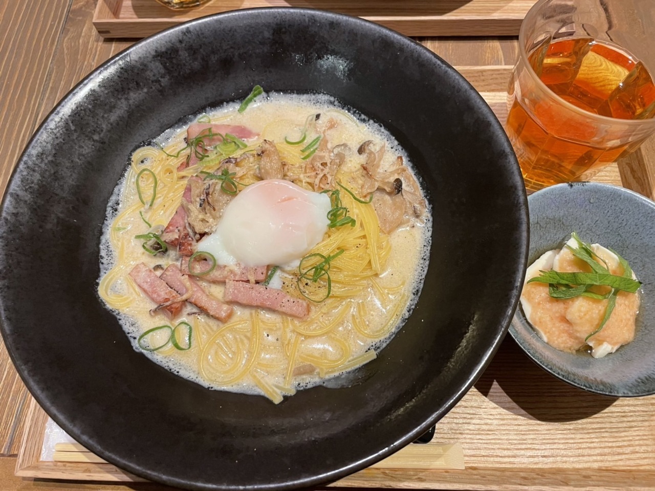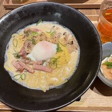 和風パスタ専門店です。なんばパークス、レストランフロアにあります。美味しい和風パスタが沢山あります。豆乳を使用したパスタを頂きました。ヘルシーで美味しいです。パンケーキが付いたセットメニューにしました。デザートも豊富です。