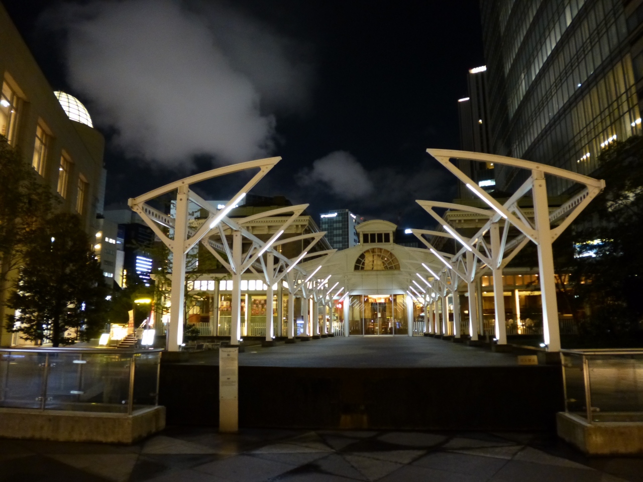 汐留のホテルに宿泊した際、旧新橋停車場が近かったので、夕食後とチェックアウト後の2回足を運んでみました。今まで昼間に訪れることが多かったのですが、夜は暗闇の中に白い駅舎が浮かび上がるような雰囲気があり、昼とは異なる見ごたえある景観でした。