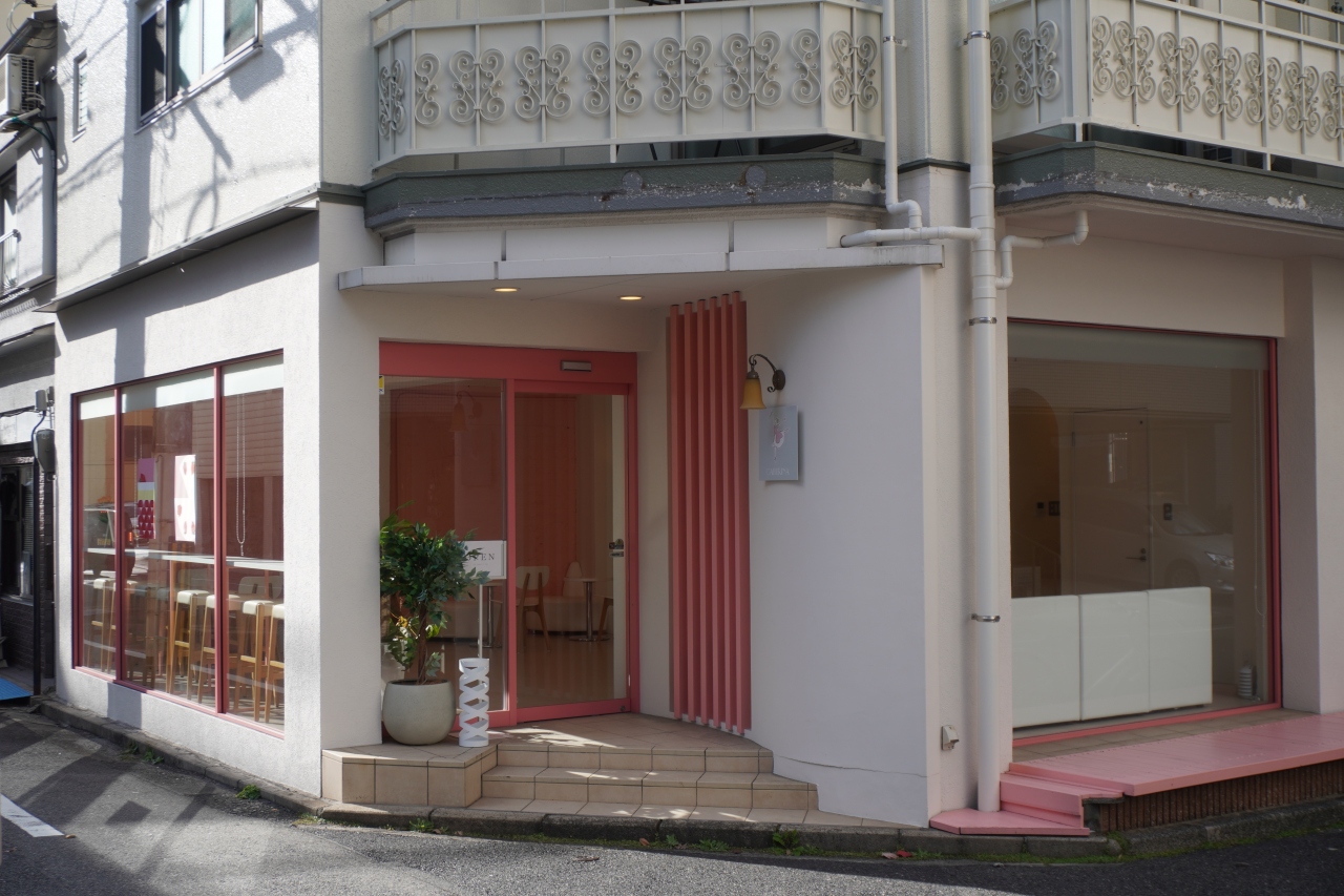 古江から広島市内橋本町にやってきたスイーツのお店。ピンクと白が基調の外観に、ゆったりとした店内も清潔感があって、けっこうおしゃれ。