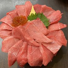 バナナマンのテレビせっかくグルメで見つけました。中トロがどっさりのったまぐろ丼!!価格もお値打ちでかつまたサービス満点。マグロカツとキャベツは食べ放題。黒はんぺんフライも一枚付きます。さらにいまなら中トロ丼はいくら大さじ一杯サービスです。