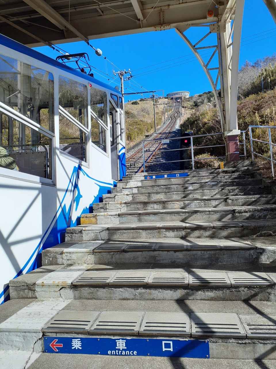316m乗車時間3分と短いですが、十国峠に上がると素晴らしい展望が待っています。ドッグランがあるので犬もケーブルに乗っています。犬は往復200円だそうです。日本では動物が乗り物に乗っているのは珍しい光景です。「箱根旅助け」に乗車券が含まれていました。