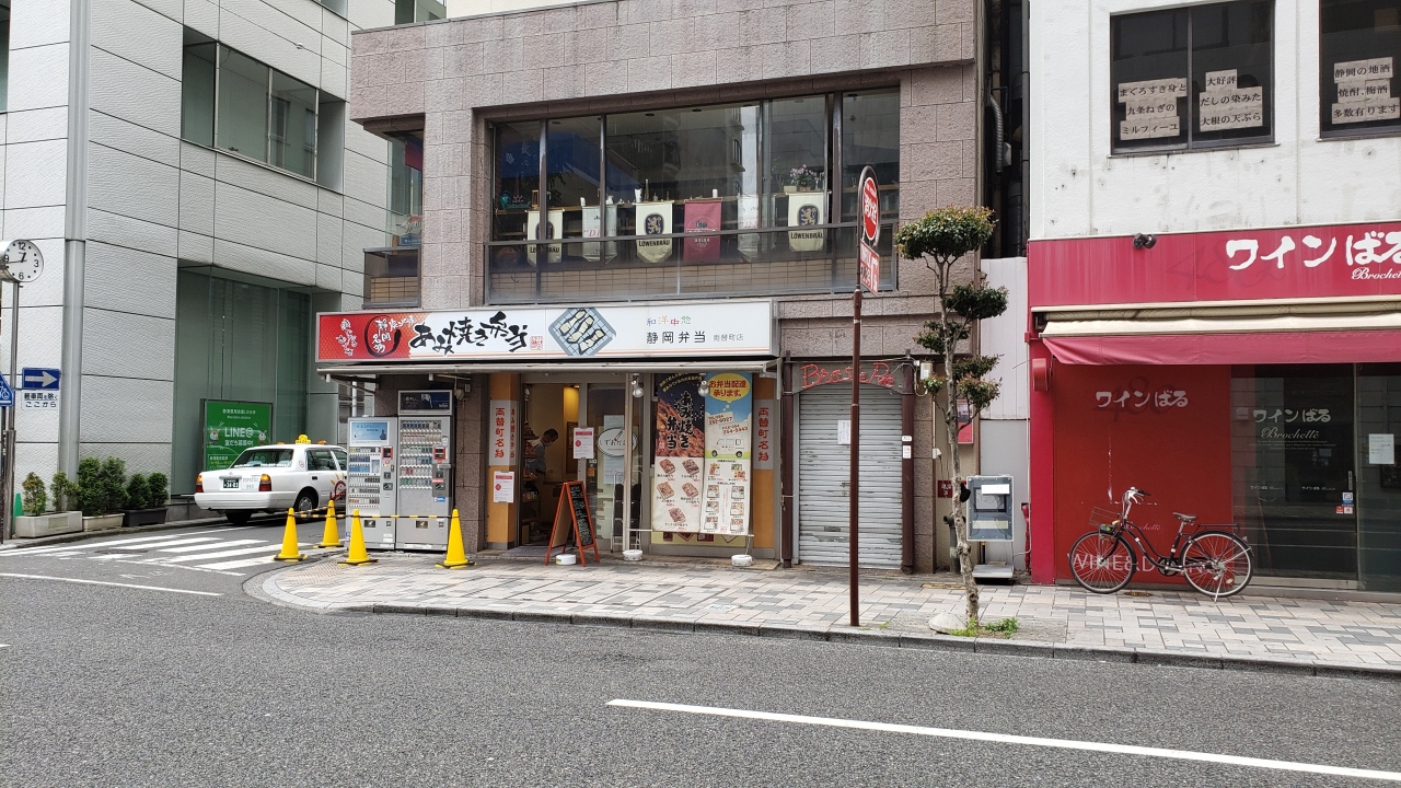 静岡駅から、呉服町通りと言う車道がクネッている飲食店が並ぶ通りを歩き、「呉服町」交差点を左折、100~200メートル歩くと、右手にお店があります。お店は、「ユーアイホテル」の1Fに入居する形式になっているようで、「ユーアイホテル/静岡弁当」と言う看板があるので、それを目指せば、着くはずです。