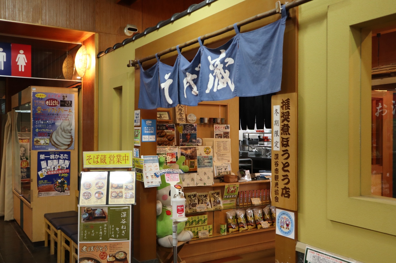 深谷バイパス沿いの「道の駅おかべ」の物産センターにあります。そば店ですが、名物の煮ぼうとうセットを注文。大きな深谷ネギのかき揚げがセットになっていて、ボリュームもありおいしいです。太いうどんですが鍋ごとでてきて小分けして食べます。温まります。