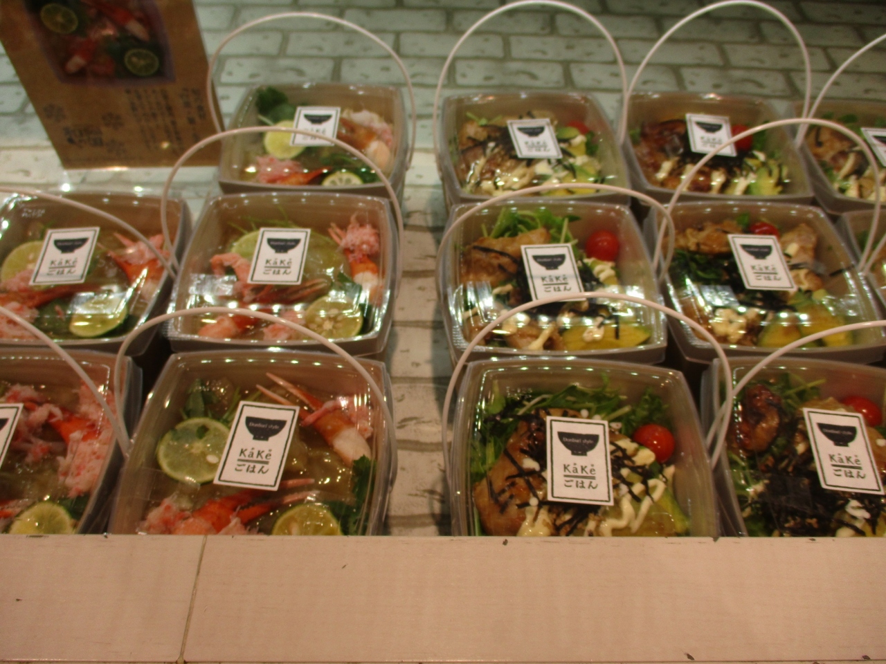 JR大阪駅の構内にある「エキマルシェ」。立ち寄りやすくて便利です。この中にお店があります。お弁当やお惣菜のお店です。ボックスに入ったお弁当が目立ちます。今回はチキン&アボカドの照り焼きあおさだしごはんや白菜と蟹のだしあんかけ&しょうがかけごはん 等がありました。ユニークでどんな味だろう?と気になります。エキマルシェに来ると思わず