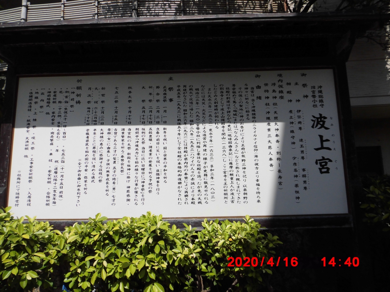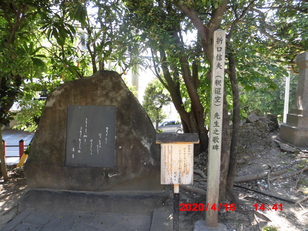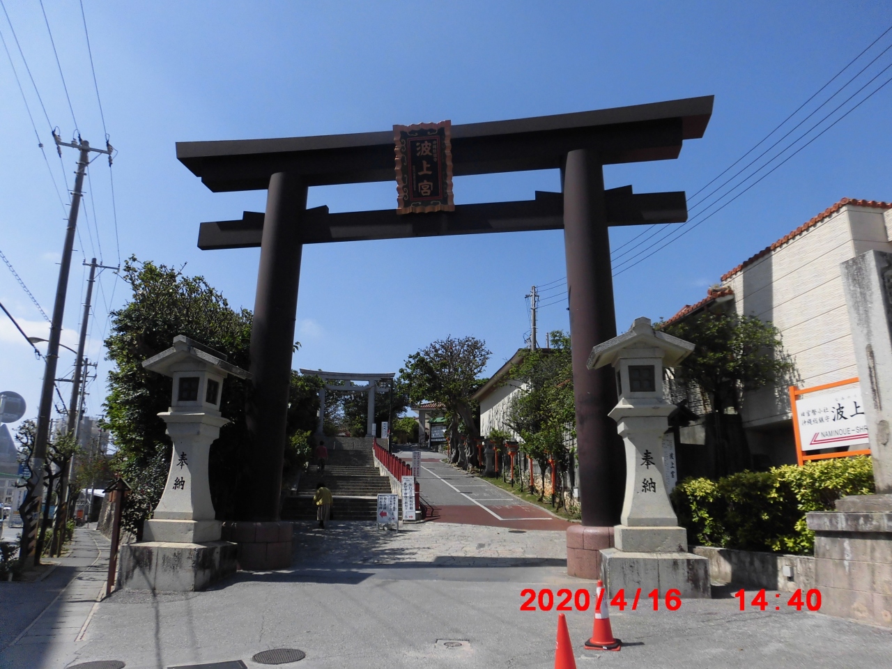 那覇市観光で立ち寄りました。旭ヶ丘公園の西にあった波上宮の御本殿の北は海が迫ってます。波の上通りを北に進むと波上宮一ノ鳥居があり、更に進むと左手にが折口信夫の歌碑があり更に奥には波上宮二ノ鳥居があります。波上宮は更に奥にあります。本殿は波の上ビーチから外観が見えます。