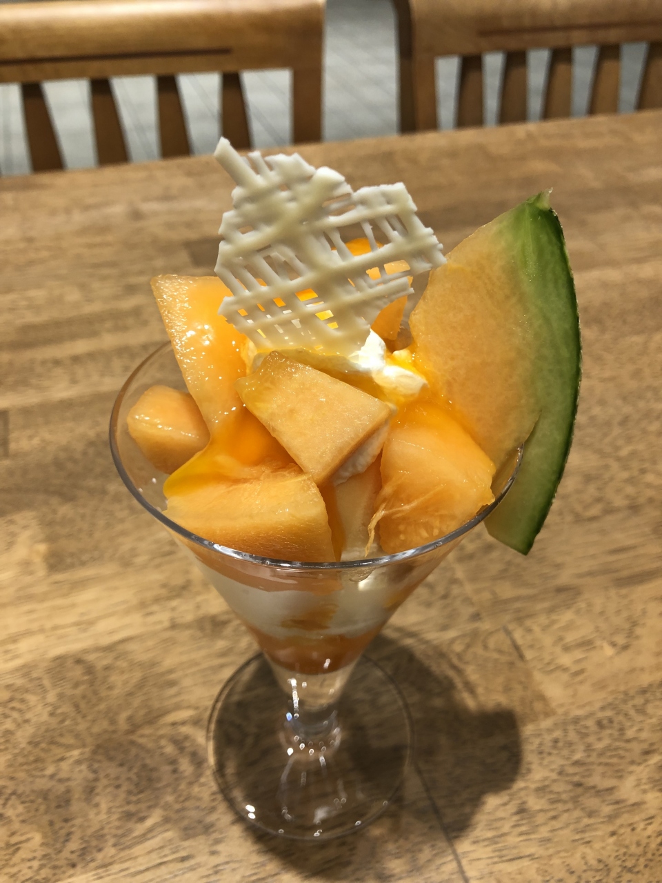 今回はルタオから歩いて少し行ったところの姉妹店 パセオでルタオのドゥーブルフロマージュを食べました。また、この時期限定のメロンパフェもお勧めです。
