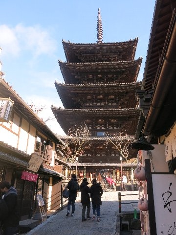 五重塔です。応仁の乱にも焼け残った1440年の再建によるもので、高さは46メートル。まさに八坂のシンボルです。