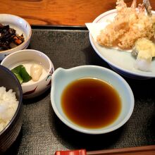 天婦羅には大量の大根おろしがついており、つゆ派としては嬉しいですね。