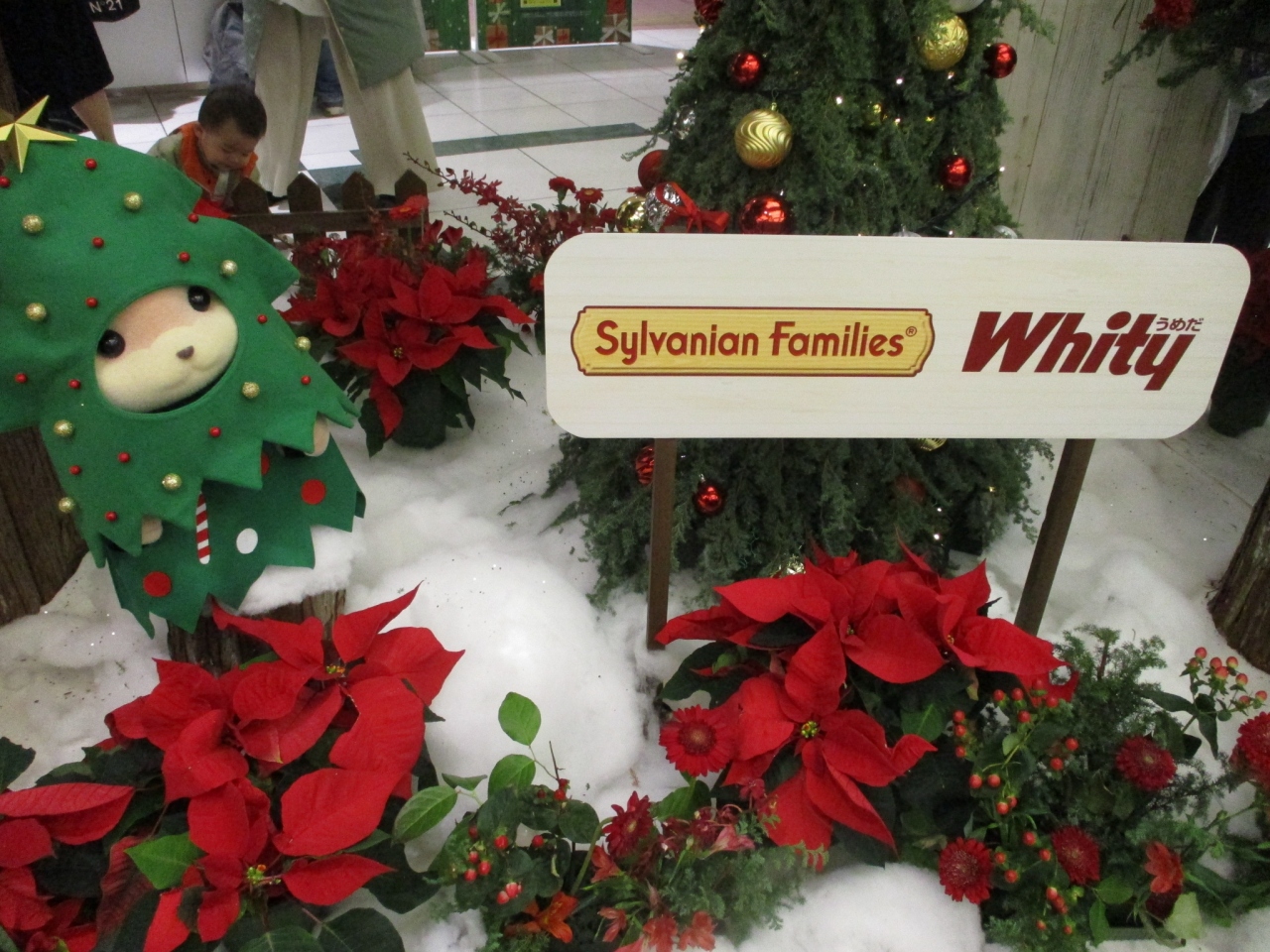 梅田の地下に広がるホワイティうめだ。飲食店が多く多くの人が通行しています。先月1か所でシルバニファミリーのクリスマス装飾を見かけましましたが、先日別場所でも見かけました。