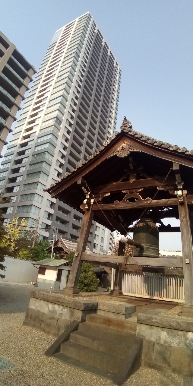 東海寺は、品川駅南方の旧東海道沿いのエリアにあります。 江戸から出ていた主要街道の中でも特に風情があるエリアで大好きです。添付写真のように、境内にある鐘がきれいで、後方の高層ビルとの対照がとても良かったでした。