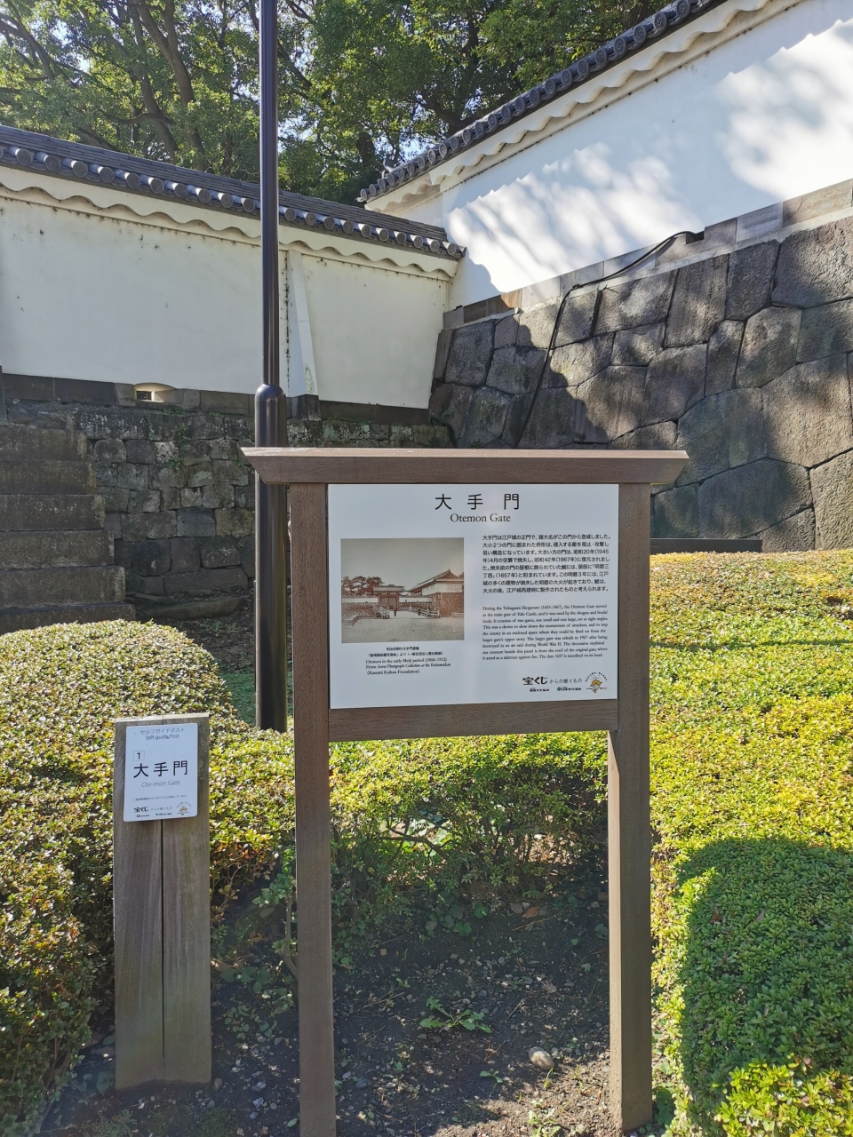 東京散歩で皇居東御苑へ。皇居東御苑内は江戸城の本丸・二の丸・三の丸の一部が公園となっているものです。中はとても広く、江戸城の石垣や本丸跡などもあり半日ゆっくりと散策ができます。公園の入り口が江戸城 大手門です。荷物持ちはこちらでチェックが入ります。江戸城の入り口ですので立派な門構えでした。