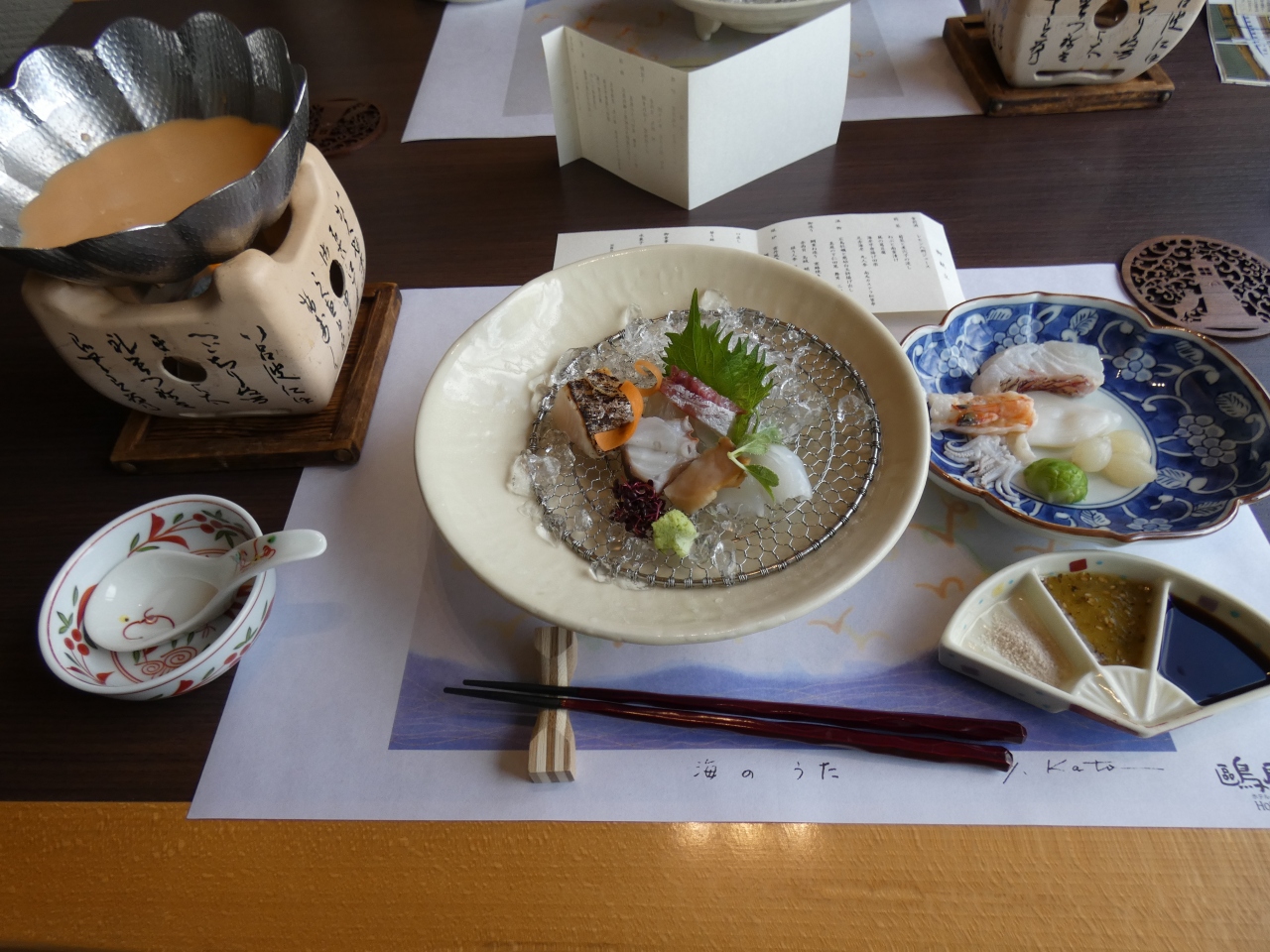 日帰りで鞆の浦観光を計画し、旅行会社のホームページからこの店の予約をしました。部屋は半個室ということで周囲は気になりません。コース料理で料理の説明をその都度していただき、この地域の特産物が良く分かりました。普段知らないネブトという小魚がおいしかった。刺身は3つの調味料も用意されていて、格別でした。
