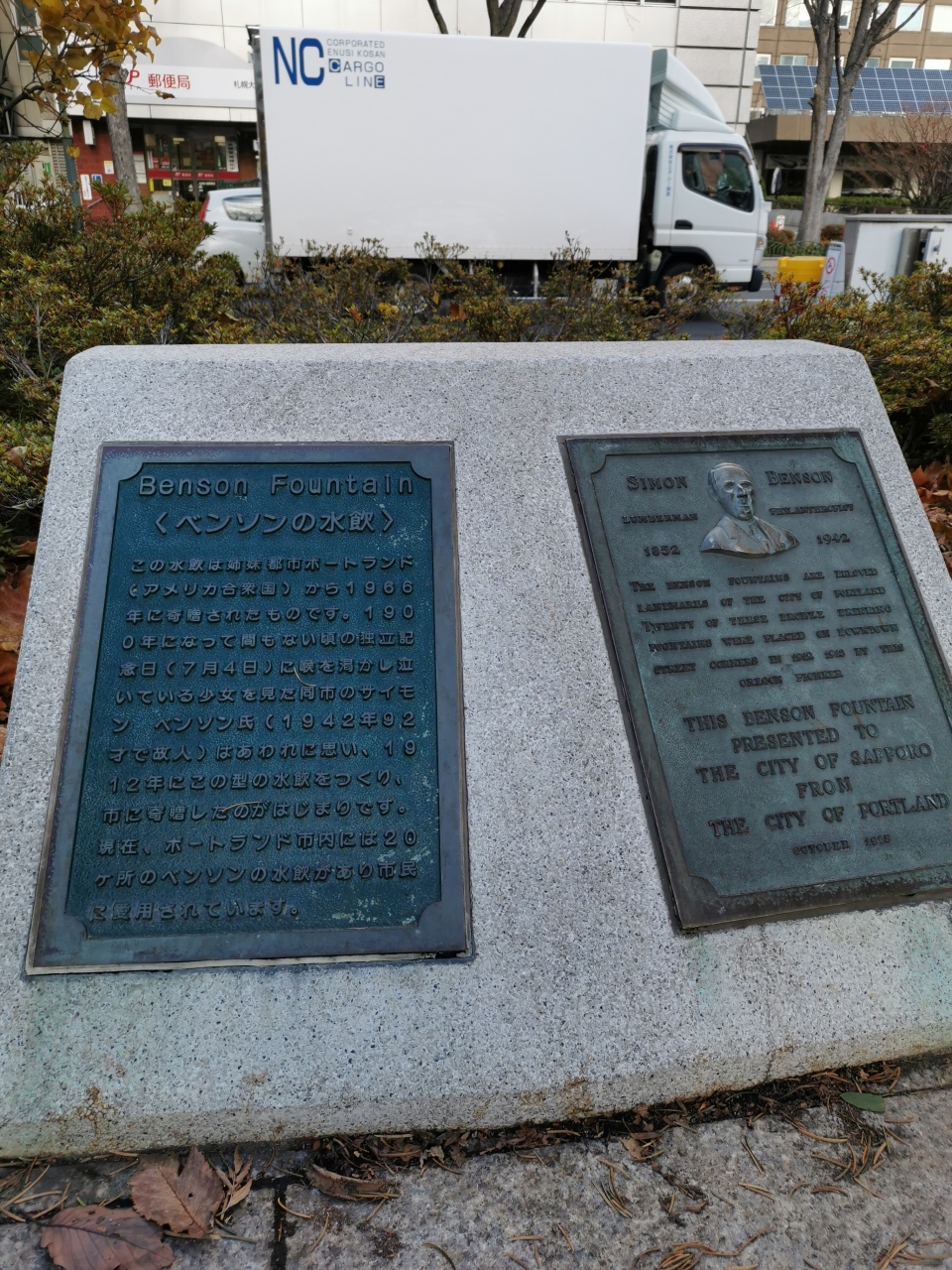北海道一人旅。札幌と小樽を散歩旅です。中島公園の後、移動して大通公園を散歩しました。地下街から上に上がると目の前は大通公園です。大通公園はオブジェや記念碑が沢山ありますのでゆっくり散策できます。「ベンソンの水飲み」は、公園内にありまして、1966年にポートランドから寄贈されたものだそうです。なんとなく札幌の風景にあっているような気がします。