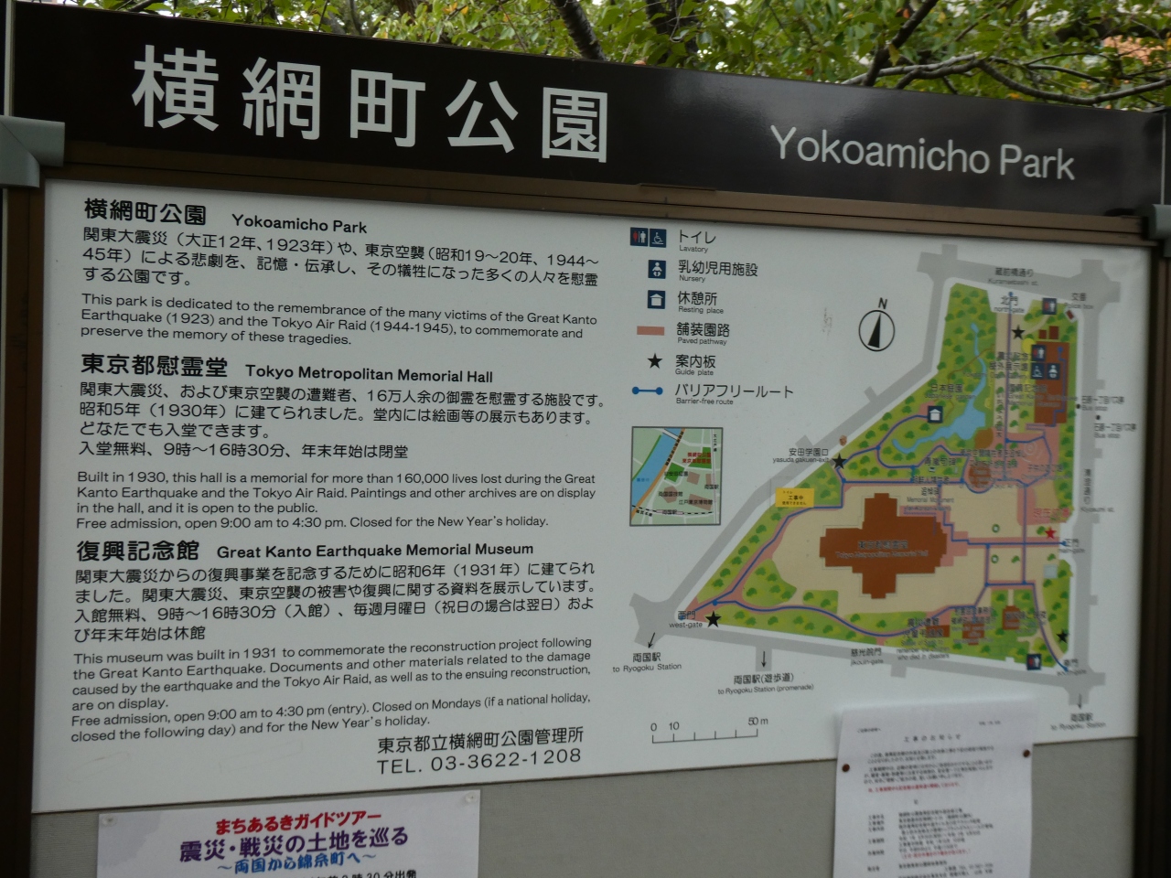 園内には東京都慰霊堂や東京都復興記念館と言った無料で見学出来る施設に「東京空襲犠牲者を追悼し平和を祈念する碑」や「震災遭難児弔魂像」等のメモリアルも設置させています。