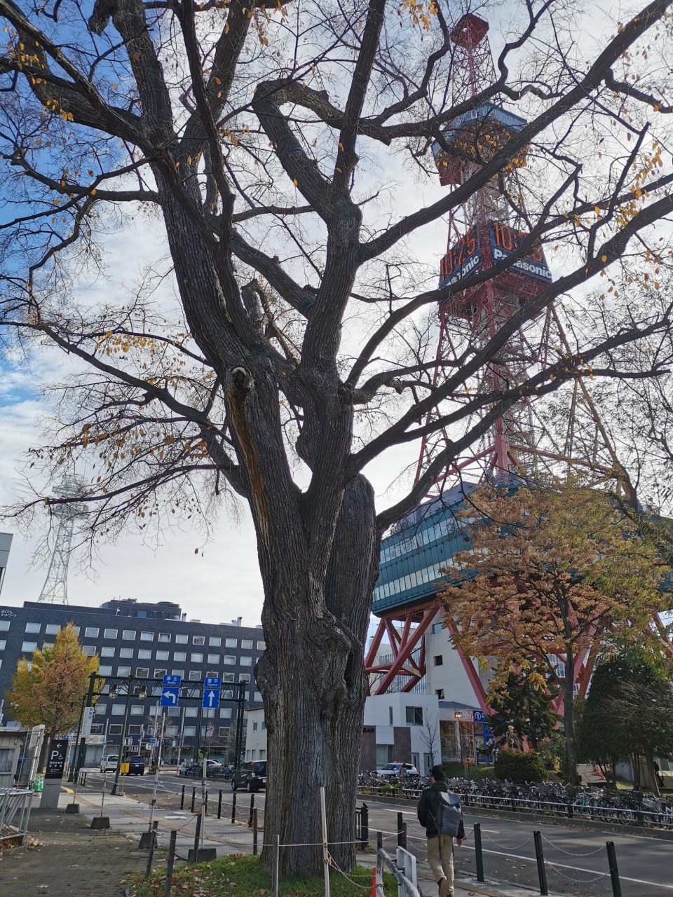 北海道一人旅。札幌と小樽を散歩旅です。中島公園の後、移動して大通公園を散歩しました。地下街から上に上がると目の前は大通公園です。大通公園の横にある札幌市役所からカナモトホールへ道路を渡りました。観光客なのでカナモトホールの中に入る直接的な用事はないのですが、さすがは札幌ですねハルニレの大きな木が立派ですし、テレビ塔も目の前です。