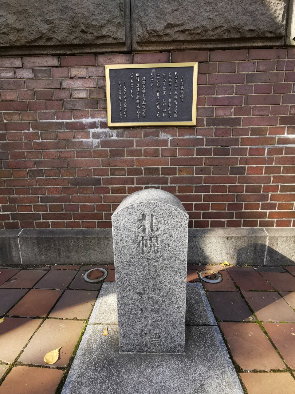 北海道一人旅。札幌と小樽を散歩旅です。中島公園と大通公園を散歩・散歩後、札幌駅方向に地上を移動しました。北海道庁旧本庁舎の赤レンガ庁舎を見に行きました。工事中で全景が見られないのが残念でした。庁舎前は庭園になっていてイチョウが真っ黄色でとても綺麗でした。札幌市道路元標は正門の門扉横にひっそりとある石碑でした。
