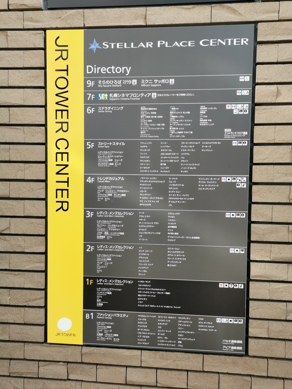 北海道一人旅。札幌と小樽を散歩旅です。中島公園と大通公園を散歩・散歩後、札幌駅方向に地上を移動しました。北海道庁旧本庁舎の赤レンガ庁舎を見学してから札幌駅まで地上を移動しました。JRタワーは札幌駅と百貨店の大丸札幌店がと隣接したショッピング施設です。上位階は展望台もあるようですが時間が無くて残念。とても綺麗で札幌の玄関口にふさわしいお店でした。