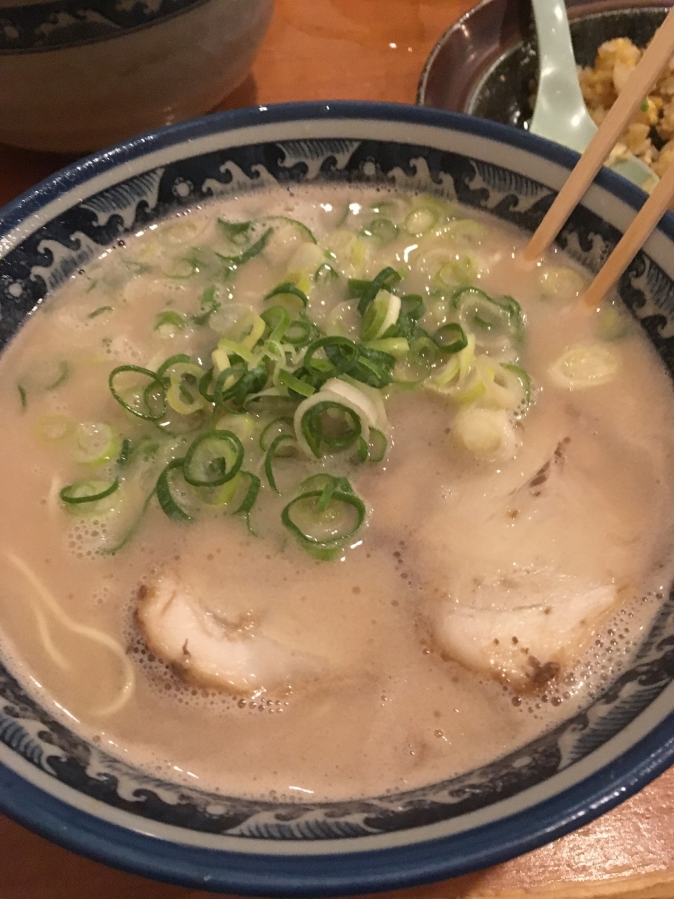 スープは見た目よりもあっさりしていますが、コクがちゃんとあり、臭みもなく博多の豚骨っていう感じでとても美味しかったです。(東京の豚骨は味も油も少し濃いので、それと比べて)