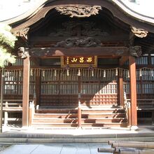日蓮宗のお寺さんですが現地に由緒書きなどが無くはっきりとしたことが判りませんでした。ビルに囲まれた境内にはコンクリート造りの事務所の様な建物があり、歴史あるお寺さんらしい感じはしませんでしたが、本堂の破風の下回りの木彫がとても美しく見所の一つかなと思いました。