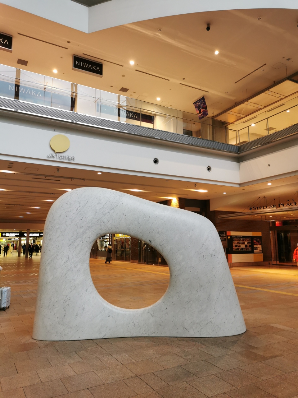 北海道一人旅。札幌と小樽を散歩旅です。中島公園と大通公園を散歩・散歩後、札幌駅方向に地上を移動しました。北海道庁旧本庁舎の赤レンガ庁舎を見学してから札幌駅まで地上を移動。札幌駅の構内を北口に移動する途中に「札幌駅南口オブジェ 妙夢」がありました。札幌駅の定番の待ち合わせ場所だそうで、変わった形のオブジェです。印象に残りますね。
