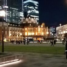 また、夜はライトアップされた東京駅赤レンガ駅舎を見れます。