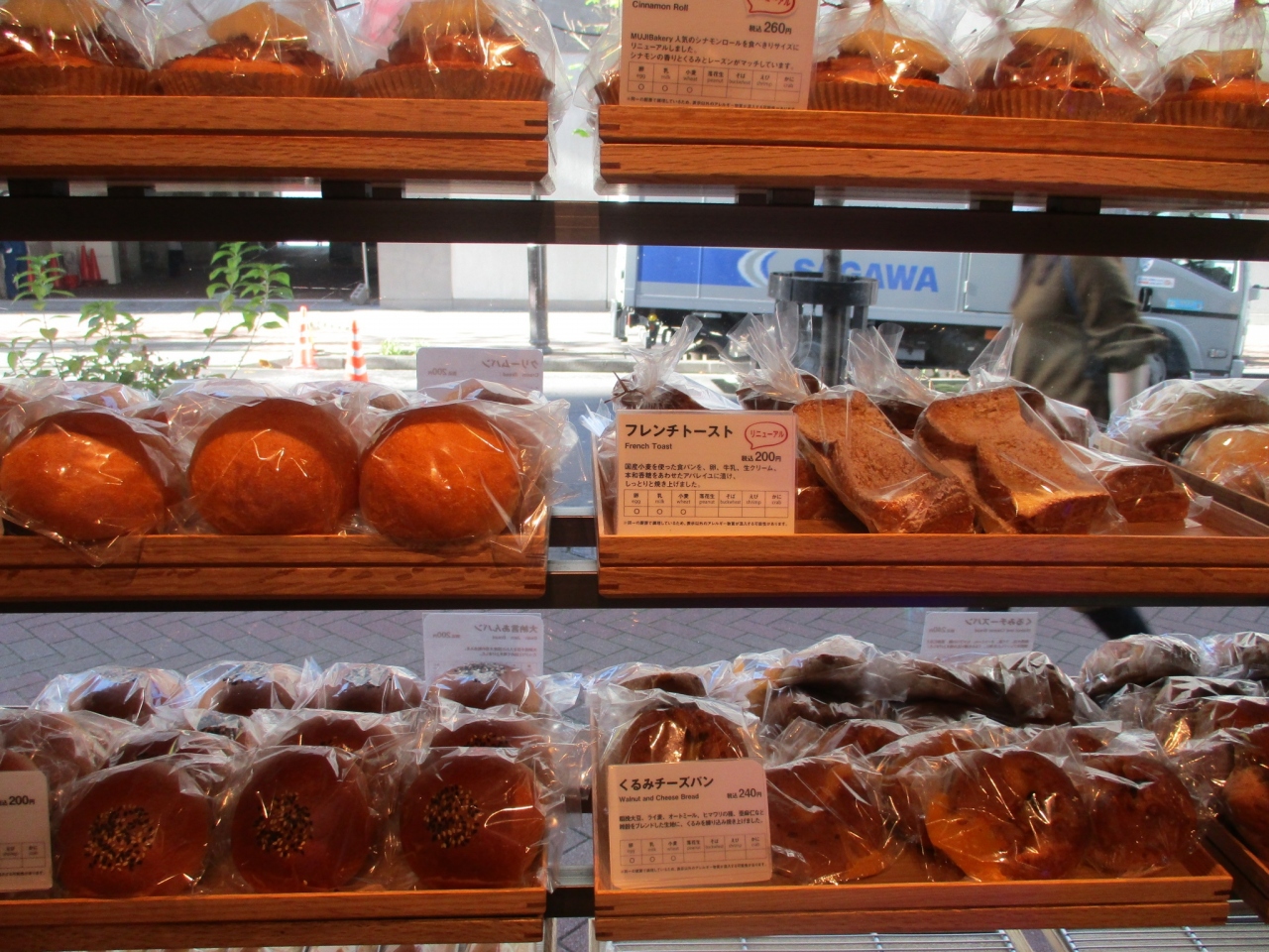 銀座の無印良品の1階にベーカリーショップがあります。規模はそれほど大きくありませんが、いろんなパンが売られています。めったにベーカリーのある無印のお店を見かけないので、朝食用にいくつか購入しました。選ぶのも楽しかったです。
