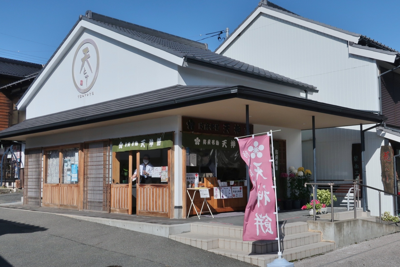 防府天満宮の門前菓子といっていい存在だろう。餅といっても蒸した饅頭ではなく、焼き菓子だ。だれもが指摘しているが、同じく菅原道真を祭神とする太宰府天満宮の梅ケ谷餅によく似ている。食感もそっくりだ。ただ、天神餅の方が種類が多いかもしれない。