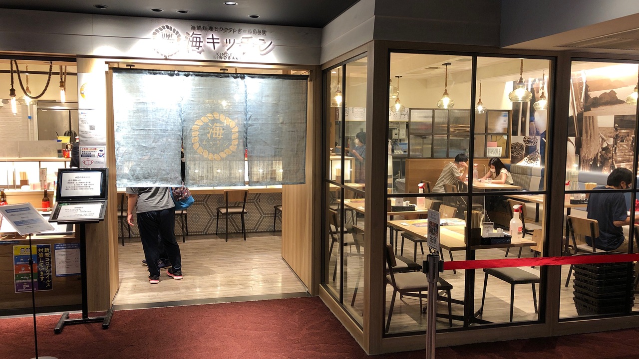 伊丹空港のレストランフロアにあります。「海キッチン」という店名のとおり、海鮮メニューがありますが、中華メニューなどもあり多彩でした。期間限定のカキフライ定食を食べました。店のアプリをDLすると、大きな揚げギョーザ2個もサービスしていただけました。