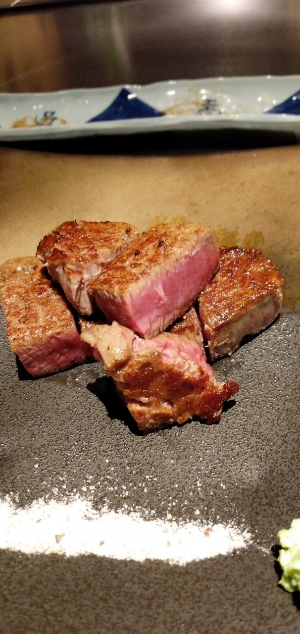 自社牧場の近江牛を目の前で鉄板焼きして提供して下さるお店。もちろんフランベに魅せられる、まさに体験としての食事が出来る仕様です。ランチコースに単品を足す贅沢ランチをしました。手作りハムからガーリックライスまで余すところなく堪能できました。