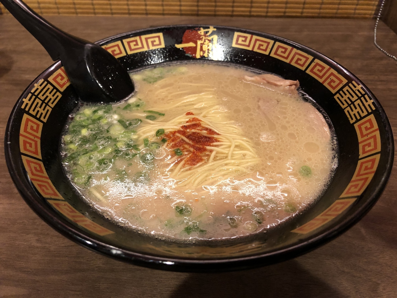 福岡空港内の一蘭ラーメンです。羽田に戻る前の福岡の最後を飾るに相応しいグルメです。街中の一蘭と価格や店内の作りや雰囲気も同じです。もちろんラーメンも同様で安定の美味しさです。お土産も売っているのでここでお土産の一蘭ラーメンを購入しました。余談ですが、ちぢれ麵の一蘭ラーメンにしましたが、麺は通常の袋麺と同様の揚げ麺になっています。個人的にはお店で出てくるのと同じストレート麵タイプの方が好みです。