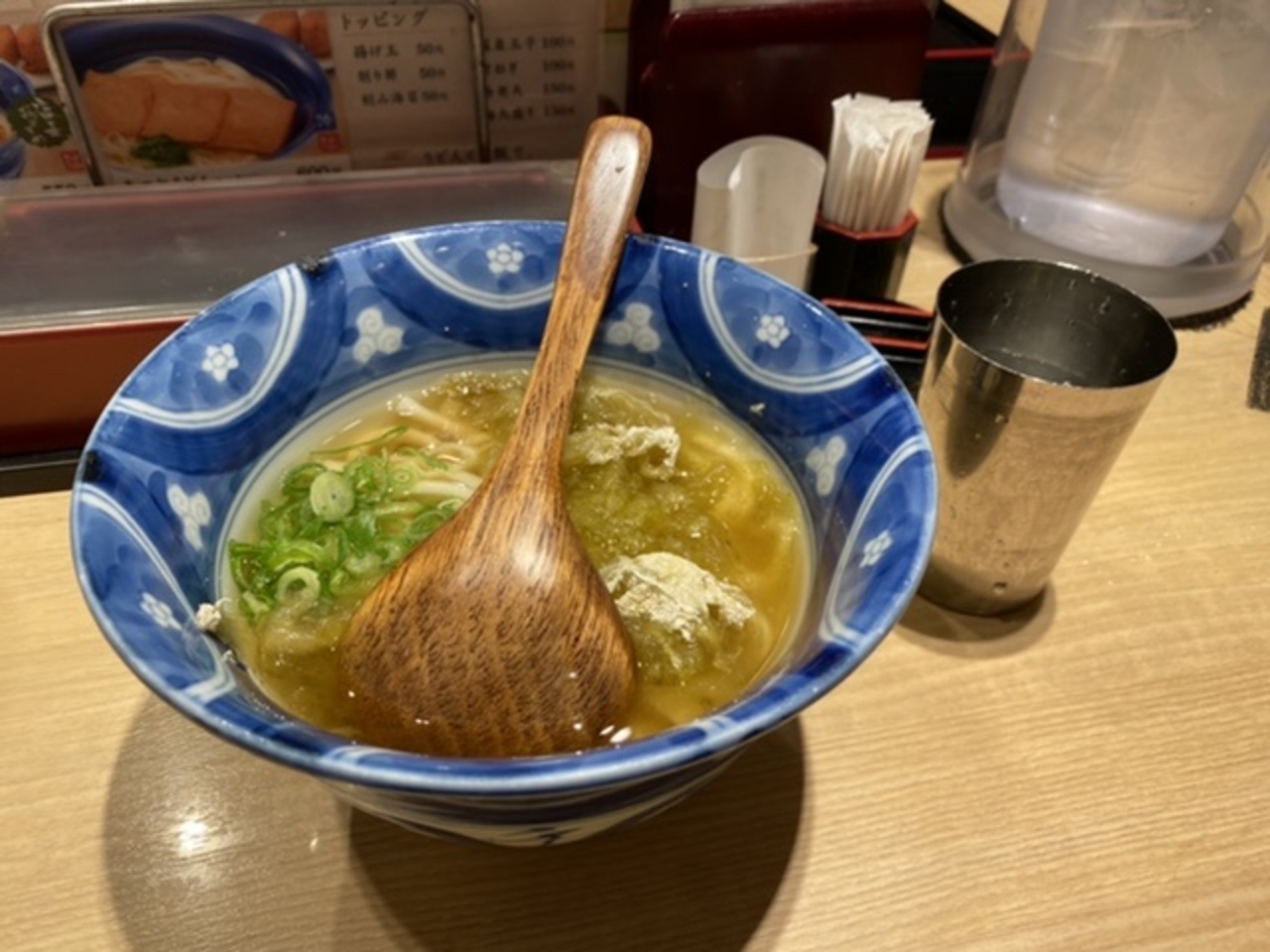 朝は7:00から営業してます。食べたのはこんぶうどん450円!寒い朝だったので温まりました。ここのうどんは喉越しが良くて好きです。