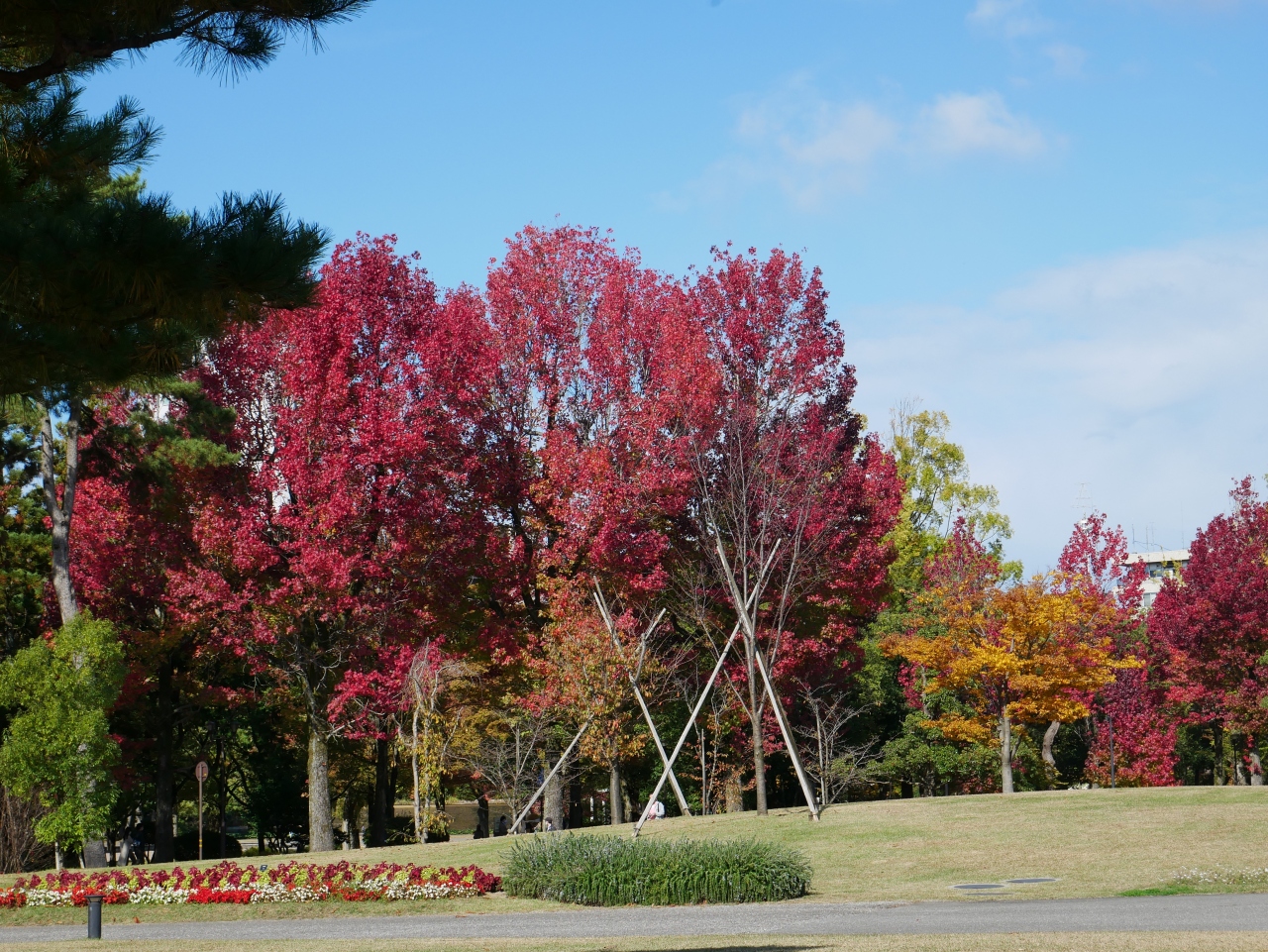 しいのき迎賓館の横と裏に広がる広い芝生の緑地です。