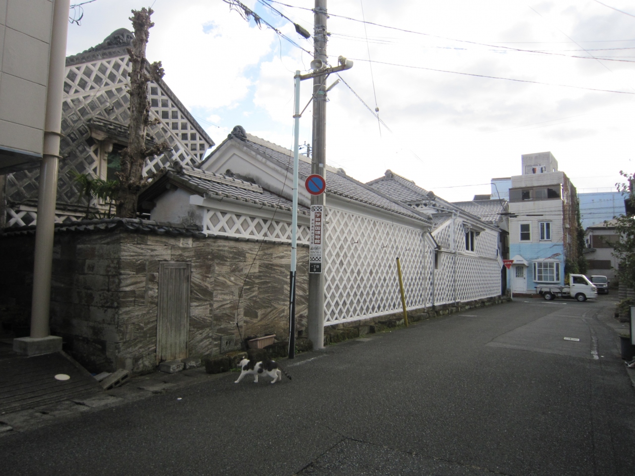 幕末の下田の風情を感じる建物、「下田登録まち遺産」第1号の雑忠、江戸時代から続く民家、廻船問屋か商家、下田を代表するなまこ壁の民家として有名だそうです。観光案内書になまこ壁の家として雑忠の絵のみが載っています。なまこ壁の建物は下田市街地には点在してありますが、雑忠が一番になまこ壁全体が見える建物なのでしょう。下田駅から近いですが、ちょっと道がずれると分からなくなります。案内地図がなまこ壁の家雑忠の近くにありました。