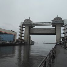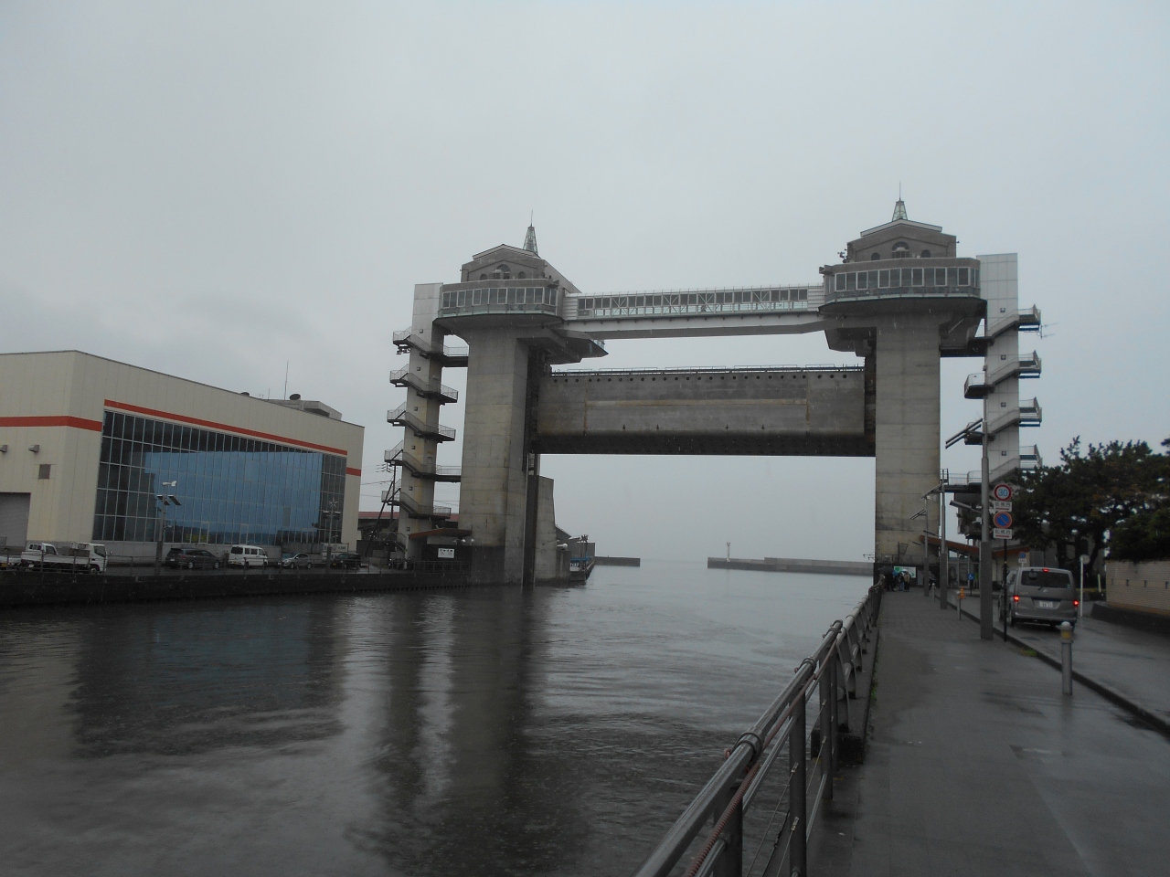 深海水族館を訪れた際、遠くからちょっとかわった形の建物が見えたの近くまで歩いてみたら、それが水門兼展望施設のびゅうおでした。エレベーターで4階まで上がれます。