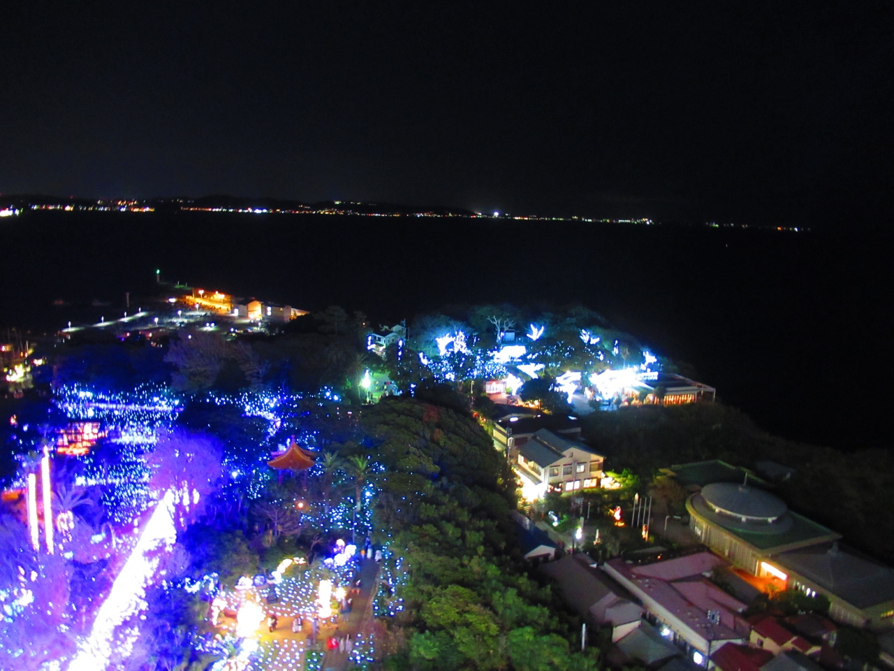 登る前から寒かったのですが、屋上は風が強くてすごく寒かったです。でも眺めはよくて、「江の島1dayパスポート」があったので昼間と夜間と両方くればよかったと思いました。