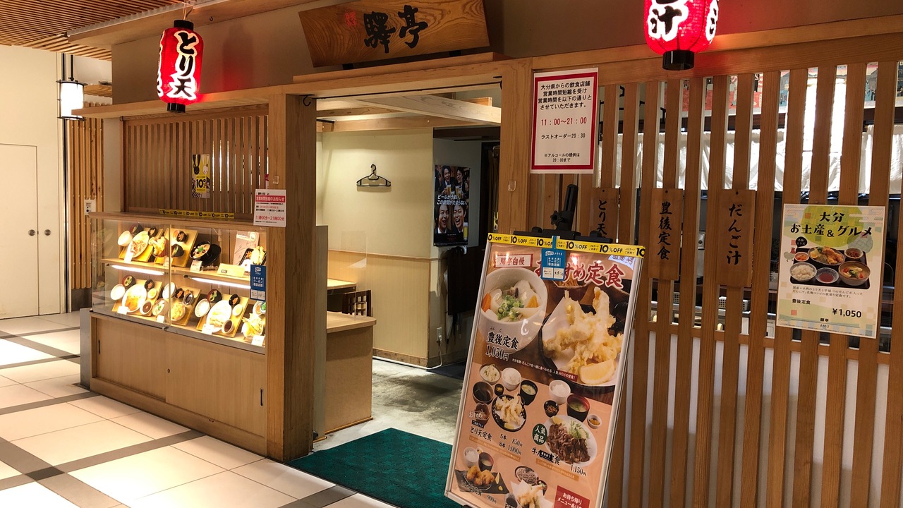 アミュプラザ1Fにあるレストランです。店の看板は「驛亭」なのですが、アミュプラザの地図には「豊後茶屋」とかかれており、とまどいました。大分名物のだんご汁ととり天が一気に食べられる「豊後定食」1050円がおすすめです。