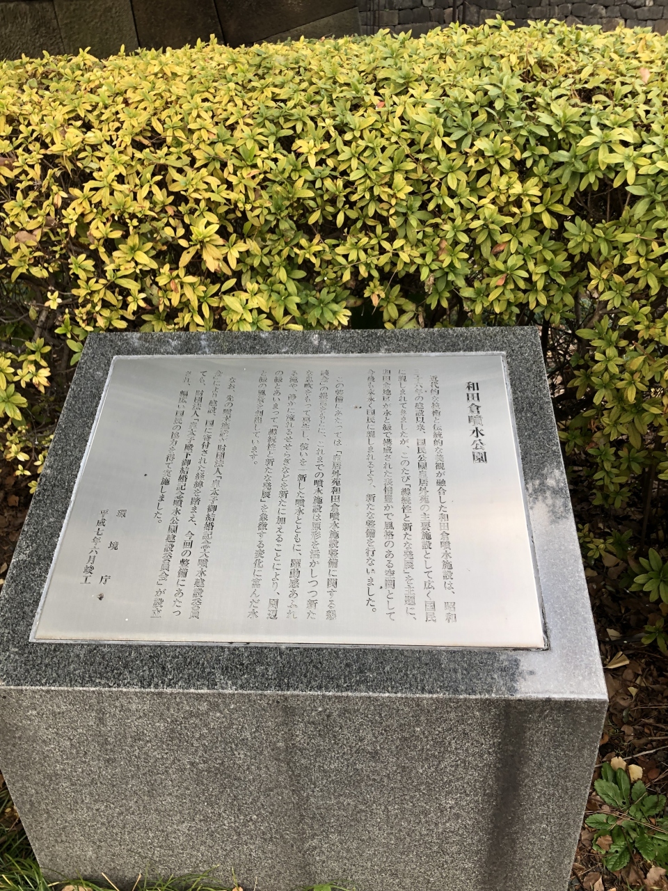 皇居外苑内にある公園です。ダイナミックな噴水がシンボルになっています。噴水のほか滝もあって、とにかく水が豊富で癒される空間でした。公園内にはスターバックスもあります。元々は「和田倉門」という門があったそうで、現在も石垣とお濠に架かる和田倉橋に当時の面影が残っています。