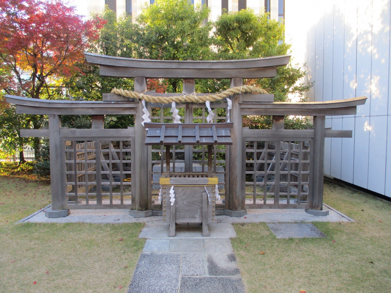 ギンザコマツビルの西館の屋上は芝生庭園になっていて、神社があります。エレベーターを降りて外に出てすぐのところにこんな風景が広がっているとは意外でした。詳しくわかりませんが、三輪神社は奈良の大神神社と関係があるようです。大神神社とたしかに雰囲気が少し似ていると思いました。