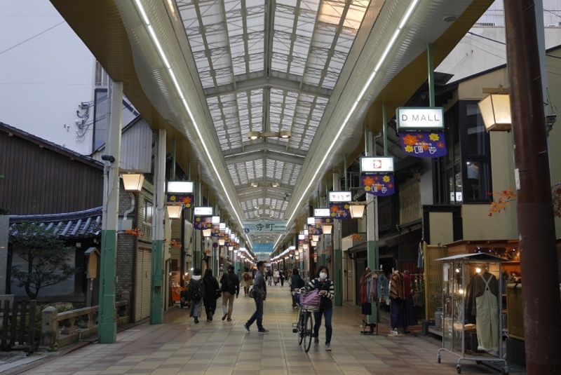 京都の町を南北(タテ)に通っている通りです。一部は商店街になっています。意外と地元にはアーケード付き商店街がないので、全国的にはあまり珍しくないものだとは知ってはいるものの、テンションあがりますね。名前の通り、かつては寺町だったのでしょう…いまもいくつものお寺が界隈に残っていました。