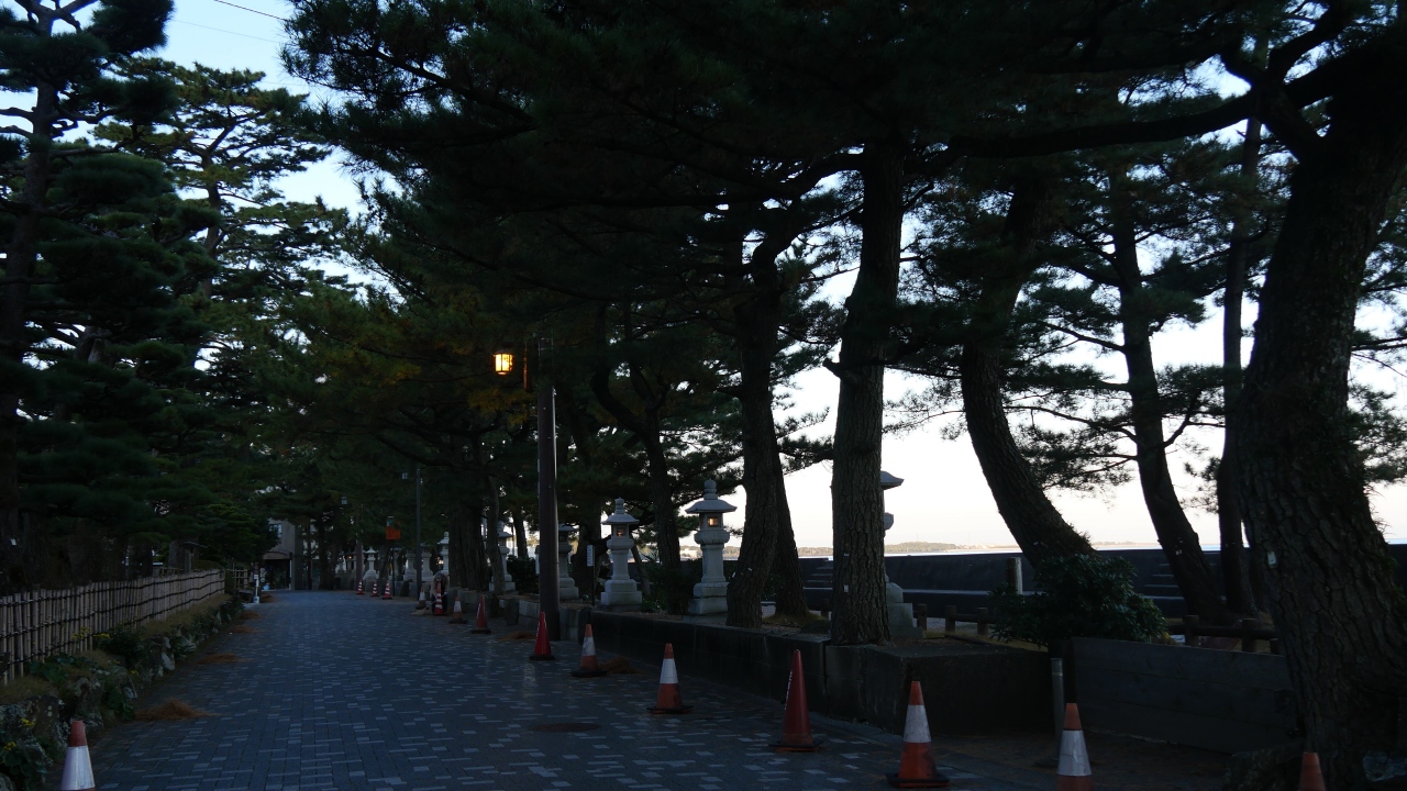 JR二見浦駅から参道を歩いて15分ほどで海岸に出ます。