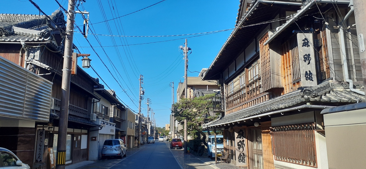 かつてはお伊勢参りのお客さんでにぎわったのか、レトロな木造の旅館が多く並んでいて雰囲気のいい通りです。
