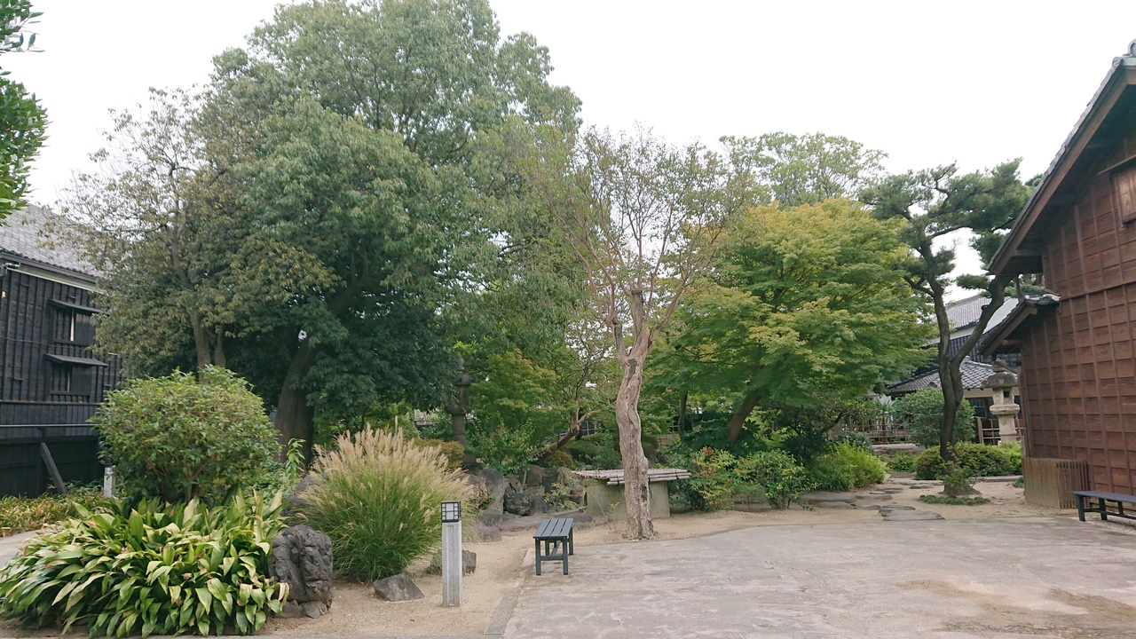 半田運河近くに立地する、日本庭園です。10月下旬のお昼前の時間帯に訪問しました。庭園内は全般的に緑が多く、静かで落ち着いた雰囲気でした。また、ベンチが設置されるなど、訪れた人に対する配慮が感じられ、好印象でした。