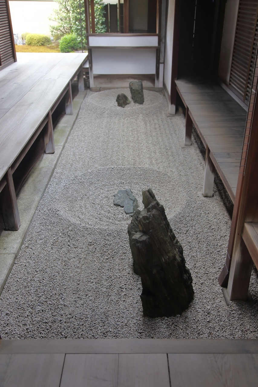 こちらの見どころは院内の石庭ですが、一番はやはり日本最少の庭園と言われる「東滴壺」でしょう。庫裏と方丈に挟まれたところにあり、受付から入ると直ぐにあります。ただ、廊下に囲まれていて見えづらく、書院前の「滹沱底」や方丈前の「一枝坦」が目に入ってくるので、気を付けてないと通り過ぎてしまうでしょう。それくらい小さな庭園です。後、石庭ではなく苔と石を組み合わせた「龍吟庭」という庭があります。
