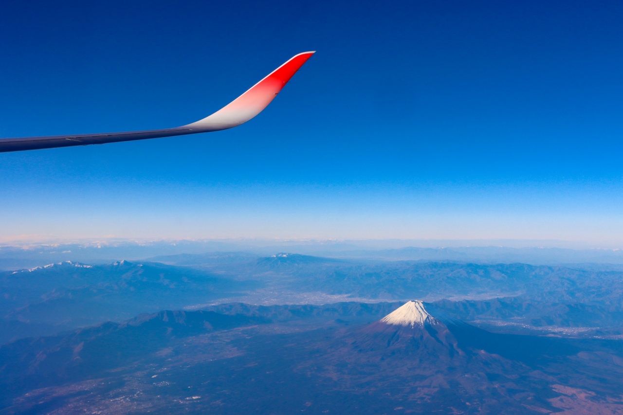 羽田から沖縄那覇行き、天気が良ければ右側(K席)からは富士山がよく見えます。この日は風が強く空気が澄んでいていい感じに富士山を見る事が出来ました。羽田を離陸してすぐに見え始め・・・江ノ島を見ながら富士山。富士五湖を見ながら富士山、そして目の前を通過。沖縄便は富士山を見るため右側窓側を予約します!