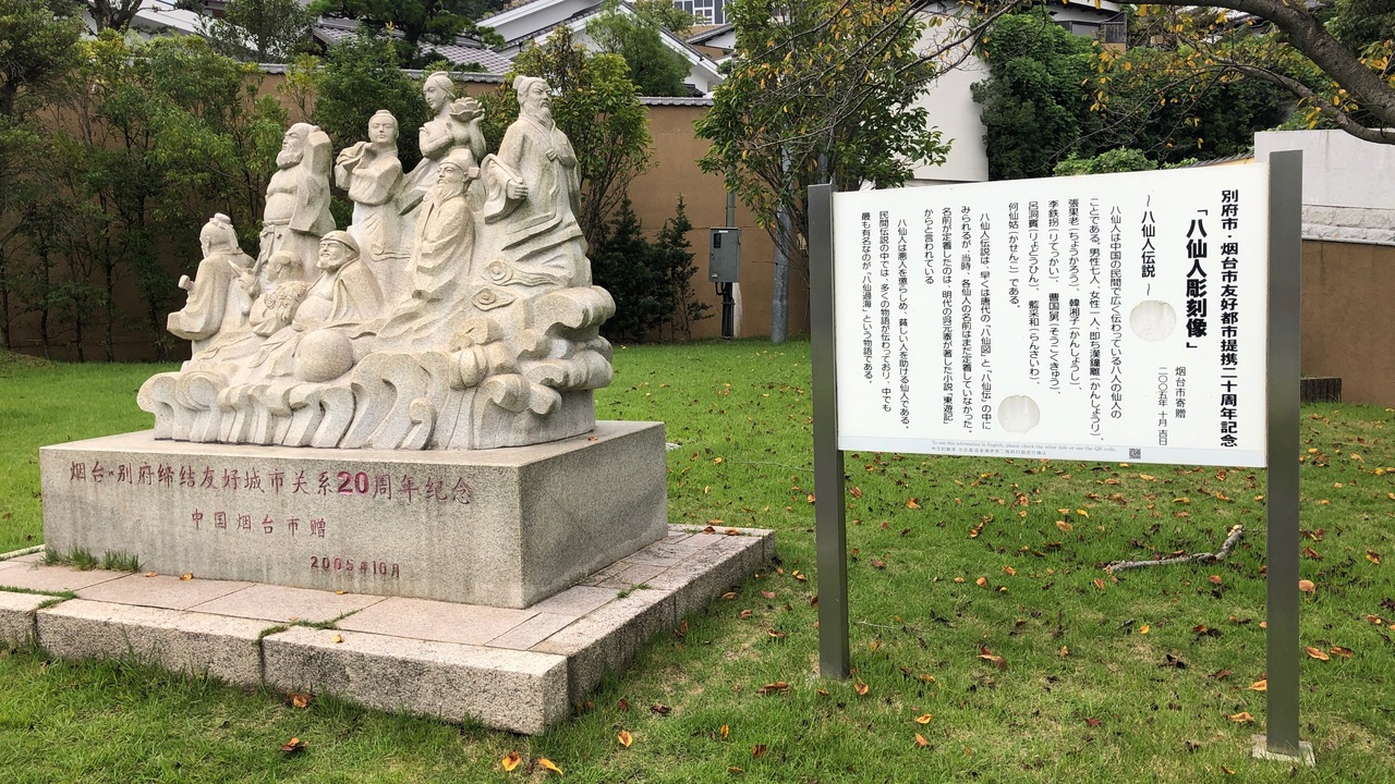 海地獄からかまど地獄へ行く途中に、鉄輪地獄地帯公園があります。その公園内に、八人の仙人が集まった石像があります。別府市が中国の市と友好都市関係であることにちなんでいます。中国には、八仙人伝説があるようです。